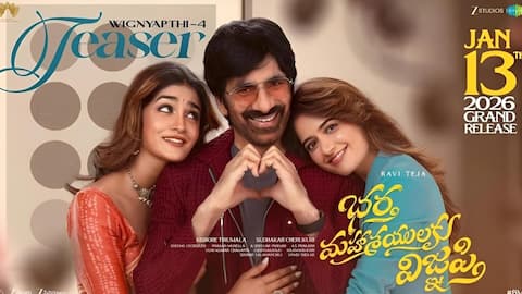 మాస్ మహారాజా రవితేజ (Ravi Teja) హీరోగా దర్శకుడు కిశోర్ తిరుమల తెరకెక్కిస్తున్న తాజా చిత్రం 'భర్త మహాశయులకు విజ్ఞప్తి'. ఈ చిత్రంలో ఆషికా రంగనాథ్, డింపుల్ హయాతి హీరోయిన్లుగా నటిస్తున్నారు. ప్రమోషన్లలో భాగంగా శుక్రవారం చిత్ర బృందం టీజర్ను విడుదల చేసింది. టీజర్లో వదిన వాళ్ల చెల్లి అంటే నా వైఫేగా అంటూ రవితేజ తనదైన శైలిలో పంచ్ డైలాగ్తో ప్రేక్షకులను ఆకట్టుకున్నారు. కామెడీ టచ్తో పాటు ఒక సున్నితమైన అంశాన్ని వినోదభరితంగా ప్రస్తావించనున్నట్లు టీజర్ స్పష్టంగా తెలియజేస్తోంది. ఈ చిత్రాన్ని 2026 జనవరి 13న ప్రేక్షకుల ముందుకు తీసుకురానున్నట్లు మేకర్స్ ప్రకటించారు.