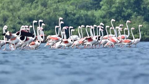 కాకినాడ జిల్లా కోరంగి అభయారణ్య పరిధిలో గ్రేటర్ ఫ్లెమింగో పక్షులు ఆకర్షణగా మారాయి. గతంలో 2025లో కేవలం ఒక గ్రేటర్ ఫ్లెమింగో మాత్రమే ఇక్కడకు వలస వచ్చిందని అధికారులు గుర్తు చేశారు. అయితే ఇప్పుడు ఒక్కసారిగా దాదాపు 70 ఫ్లెమింగోలు చేరుకోవడం విశేషమని డీఎఫ్వో రామచంద్రరావు, ఫారెస్ట్ రేంజ్ అధికారి ఎస్ఎస్ఆర్ వరప్రసాద్ తెలిపారు. కోరంగి ప్రాంతంలోని విస్తారమైన చిత్తడి నేలలు, ఆహార లభ్యత ఈ పక్షులకు ఎంతో అనుకూలంగా ఉన్నాయని వన్యప్రాణి విభాగానికి చెందిన శాస్త్రవేత్త డి. మహేష్బాబు వివరించారు. మంగళవారం ఆహారం కోసం వెతుకుతున్న సమయంలో ఈ గ్రేటర్ ఫ్లెమింగోల దృశ్యాన్ని చిత్రీకరించారు.