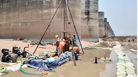 మేడిగడ్డ బ్యారేజీలో 2023 అక్టోబరులో ఏడో విభాగంలో స్తంభాలు కుంగిపోవడంతో అప్పటి నుంచి ఆపరేటింగ్ నిలిపివేశారు. దాంతో అక్కడ ఇసుక మేటలు పేరుకుపోయాయి. కుంగిన ప్రాంతాల్లో పునాదులలోకి ఇసుక, నీరు చేరిన పరిస్థితి ఉంది. ప్రస్తుతం పునాది భాగంలో బోర్ తవ్వకాలు నిర్వహిస్తున్నారు.ఇప్పటికే కదిలిన నిర్మాణాలు బోర్ తవ్వకాలతో కుదుపునకు లోనయ్యే వీలుంటుంది.అందుకే రోటర్ టైప్ యంత్రాలను వినియోగిస్తున్నారు. ఒక్కో అడుగు అతి జాగ్రత్తగా తవ్వుకుంటూ వెళ్తున్నారు. మూడు బ్యారేజీల్లో ఒకేసారి పనులు చేపట్టాలంటే వందకు పైగా యంత్రాలు అవసరమని ఇంజినీర్లు ప్రభుత్వానికి నివేదించారు.