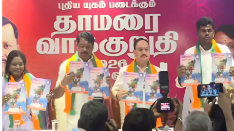 తమిళనాడులో అసెంబ్లీ ఎన్నికల సందడి మొదలవడంతో ప్రధాన రాజకీయ పార్టీలు ఓటర్లను ఆకట్టుకునే హామీలను వరుసగా ప్రకటిస్తున్నాయి. ఈ క్రమంలో భాజపా కూడా తన ఎన్నికల హామీల పత్రాన్ని విడుదల చేసింది. మహిళల సంక్షేమం, కుటుంబాల ఆర్థిక భద్రత,సంప్రదాయాల పరిరక్షణకు ప్రాధాన్యం ఇస్తూ పలు కీలక హామీలను ప్రకటించింది. కేంద్ర మంత్రి జేపీ నడ్డా రాష్ట్ర నాయకుల సమక్షంలో ఈ హామీల పత్రాన్ని ఆవిష్కరించారు. కుటుంబాల్లో మహిళా పెద్దలకు నెలకు రెండు వేల రూపాయల ఆర్థికసాయం అందిస్తామని ప్రకటించారు. అలాగే ప్రతి ఇంటికి ఒకేసారి పది వేల రూపాయలు అందజేస్తామని తెలిపారు. పొంగల్, దీపావళి, తమిళ కొత్త సంవత్సరం సందర్భంగా ప్రతి ఏడాది మూడు ఉచిత వంటగ్యాస్ సిలిండర్లను ఇవ్వనున్నట్లు హామీ ఇచ్చారు.