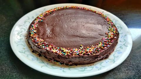 ఆ తర్వాత మూత తీసి కేక్ మిశ్రమం ఉన్న పాత్రను కుక్కర్లో ఉంచి, మళ్లీ మూత పెట్టి లో ఫ్లేమ్పై సుమారు 40 నుంచి 45 నిమిషాల పాటు ఉడికించాలి. కేక్ పూర్తిగా సిద్ధమైందో లేదో తెలుసుకోవడానికి టూత్పిక్ను కేక్లో గుచ్చి చూడాలి. అది శుభ్రంగా బయటకు వస్తే కేక్ బాగా ఉడికినట్టే. అప్పుడు మంట ఆపి కేక్ను పూర్తిగా చల్లారనివ్వాలి. ఇక మరో పాత్రలో డార్క్ చాక్లెట్ వేసి సన్నని మంట మీద కలుపుతూ కరిగించి క్రీమ్లా తయారుచేసుకోవాలి.