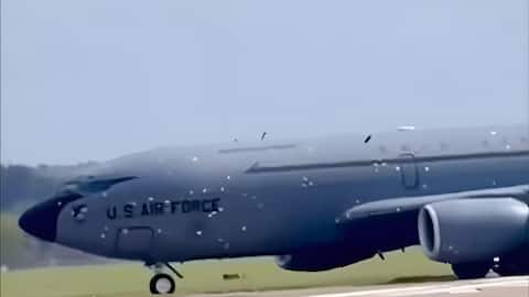 దెబ్బతిన్న కేసీ-135 విమానం వీడియో వైరల్